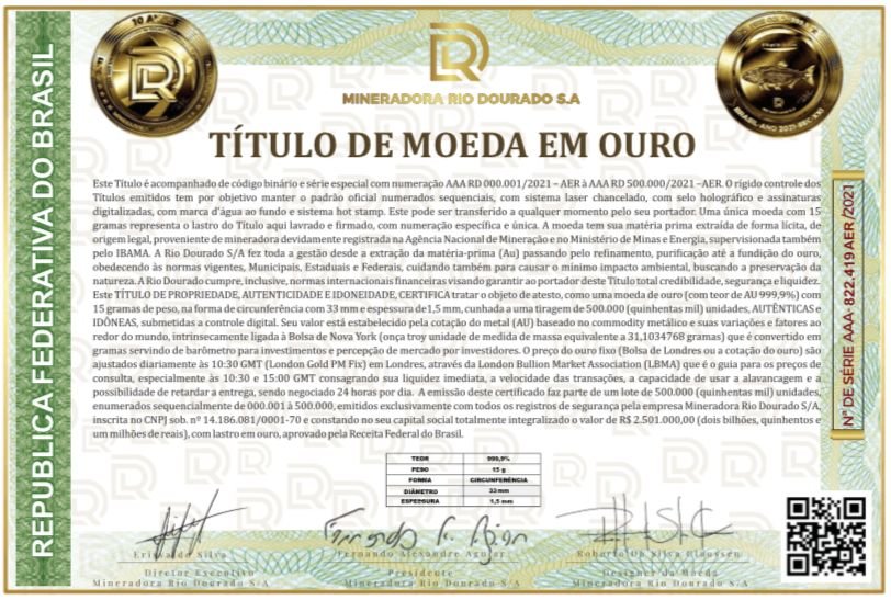 TITULO DE PROPRIEDADE DA MOEDA